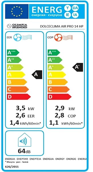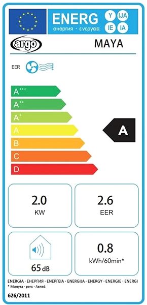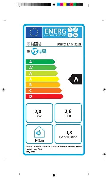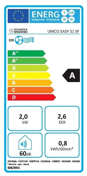 Monoblock Air Conditioner - Dehumidification, Heating, Fan, Cooling system, Timer, Remote control and Thermostat function(s), Energy Efficiency Class A, noise level of 60 dB(A),