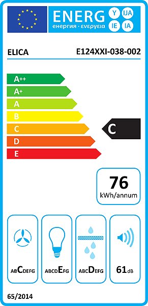 Extractor Hood built-in, energy class C, noise level: 65 dB, suction performance 389 m3/h, performance settings: 3, filter type: carbon, upper outlet diameter: 12 cm, width: 59,8 cm