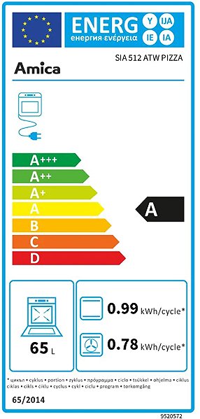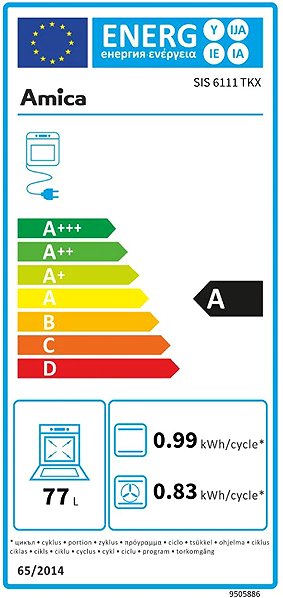 Kitchen Stove induction board, energy class A, width 50 cm, number of hotplates 4, volume 65 l, oven programs: quick preheat, grill, upper heating, lower heating, ventilator, true hot air and steam baking, telescopic sheet extension,