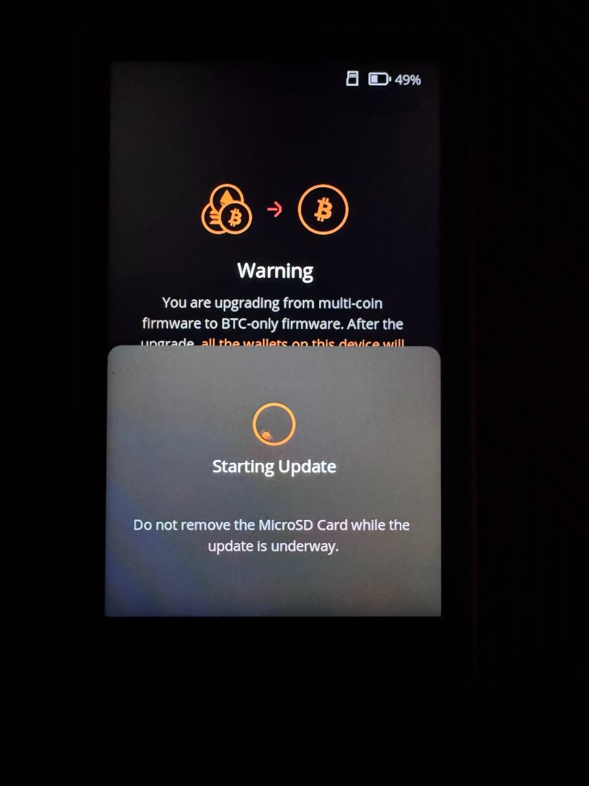Aktualizaci firmwaru lze provést zcela offline pomocí microSD karty. Tento způsob je preferovaný uživateli, kteří chtějí zachovat maximální air-gap a minimalizovat riziko napadení přes USB.