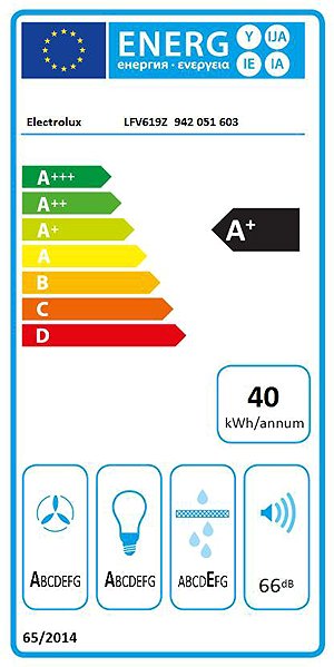 Extractor Hood chimney, energy class A, noise level: 64 dB, suction performance 650 m3/h, filter type: fat, upper outlet diameter: 15 cm, width: 90 cm