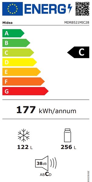 Refrigerator - with freezer, energy efficiency class C, refrigerator capacity 256 l, freezer capacity 122 l, hinges on the right, 3 fridge shelves, 3 freezer trays, 2 cooling circuits, special features display, LED light and holiday mode, size 201,8 × 59,5 × 69 cm (H × W × D)