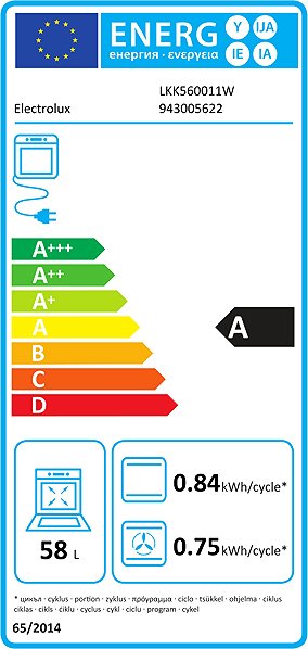 Kitchen Stove gas board, energy class A, width 50 cm, number of hotplates 4, volume 65 l, oven programs: grille, upper heating, lower heating, defrosting and ventilator, power cable without plug