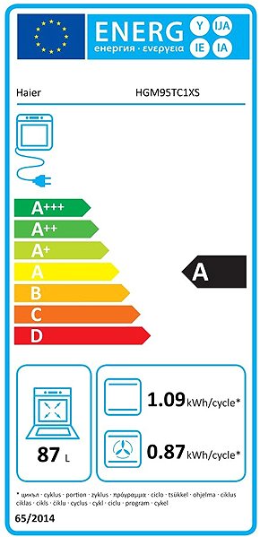 Kitchen Stove gas board, energy class A, width 89,8 cm, number of hotplates 5, volume 96 l, oven programs: grille, upper heating, lower heating, defrosting and ventilator,