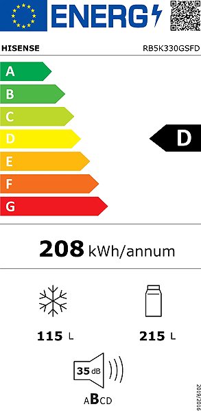 Refrigerator - with freezer, energy efficiency class D, refrigerator capacity 215 l, freezer capacity 115 l, hinges on the right, 4 fridge shelves, 3 freezer trays, 1 cooling circuits, special features display, LED light, temperature alarm and smart features, size 185,6 × 59,5 × 60 cm (H × W × D)