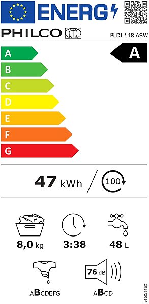 Washing Machine - with front loading, energy efficiency class A, washing capacity 8 kg, weighted energy consumption 47 kWh/100 cycles, weighted water consumption per cycle 48 l, main functions steam programme, inverter motor, delayed start, fast programme and display, special technology Fuzzy Logic, size 59,7 × 84,5 × 52,7 cm (W × H × D)