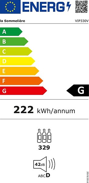 Built-In Wine Cabinet -Built-in wine cabinet with 3 independent zones; Zone temperature range: 5-20°C (upper), 5-10 °C (middle), 10-20°C (lower); Stainless steel door frame with vertical handle; White LED lighting with switch; 2 layers of tempered glass with a UV filter in the door; Automatic defrost; Humidity control; Active ventilation system; Electronic temperature control with white display; Anti-vibration system; 9 + 1 pull-out wooden shelves; Noise level: 38 dB; Annual consumption: 158 kWh; Dimensions: (H x W x D) 178.8 x 59.5 x 54cm