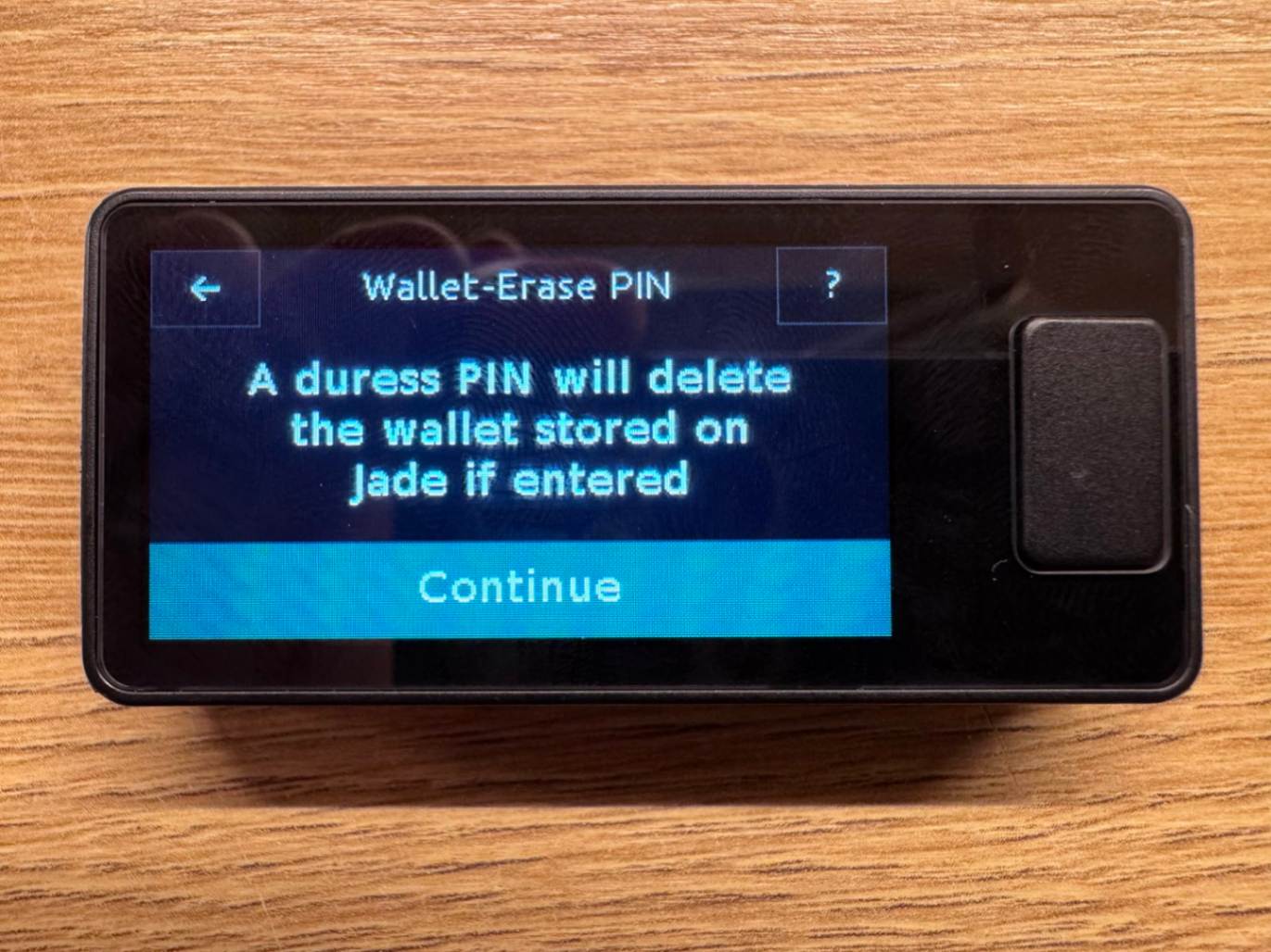 JADE PLUS nabízí možnost nastavit alternativní (nouzový) PIN, který při zadání automaticky smaže šifrované informace o peněžence uložené v zařízení. Tato funkce může být užitečná například v situacích, kdy je uživatel vystaven nátlaku. Zadáním alternativního PINu dojde ke smazání všech citlivých dat, a zařízení se tak stane prakticky nepoužitelným. Jediným způsobem, jak peněženku opět zprovoznit, je následné obnovení záložní fráze (seed) nebo SeedQR. Jedná se tedy o efektivní ochranu proti pokusu o získání vašich privátních klíčů pod nátlakem.