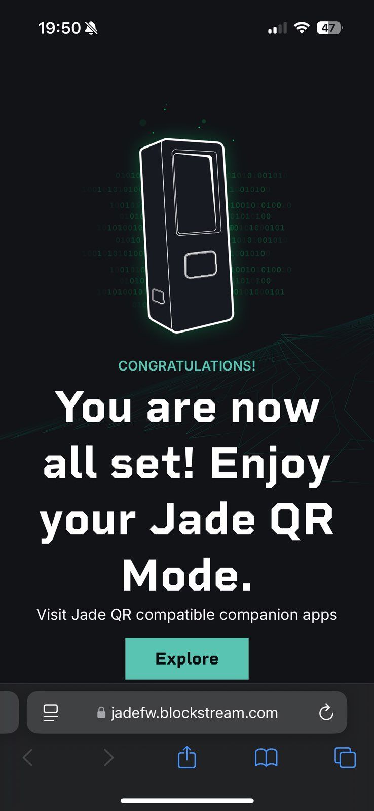 ./update_jade_fw.py při připojení peněženky přes USB. Tato metoda umožňuje také nezávislé ověření firmwaru.Při aktualizaci firmwaru pomocí USB-C flash disku nebo JadeLink máte jistotu, že firmware je autentický a nebyl nijak pozměněn. Na oficiálních stránkách Blockstreamu jsou k dispozici dvě verze firmwaru – jedna s podporou Bluetooth a druhá bez této podpory, kterou někteří uživatelé preferují z bezpečnostních důvodů. Vždy je nezbytné stahovat pouze originální soubory s příponami .bin a .hash přímo z oficiálního webu výrobce. Pokročilejší uživatelé si navíc mohou pravost firmwaru ověřit sami, manuální kontrolou hash souboru.